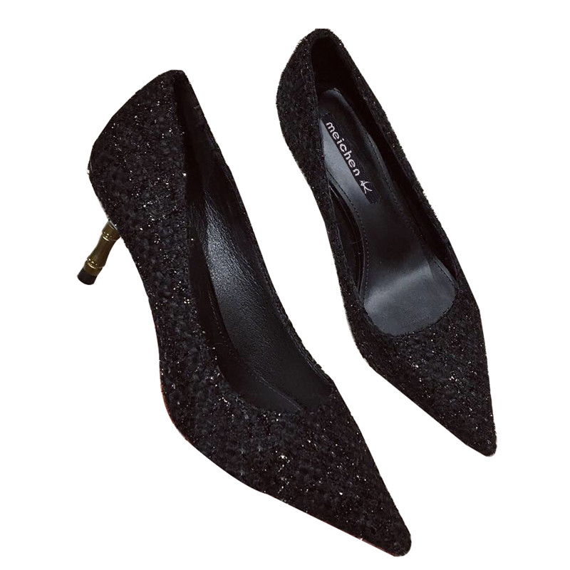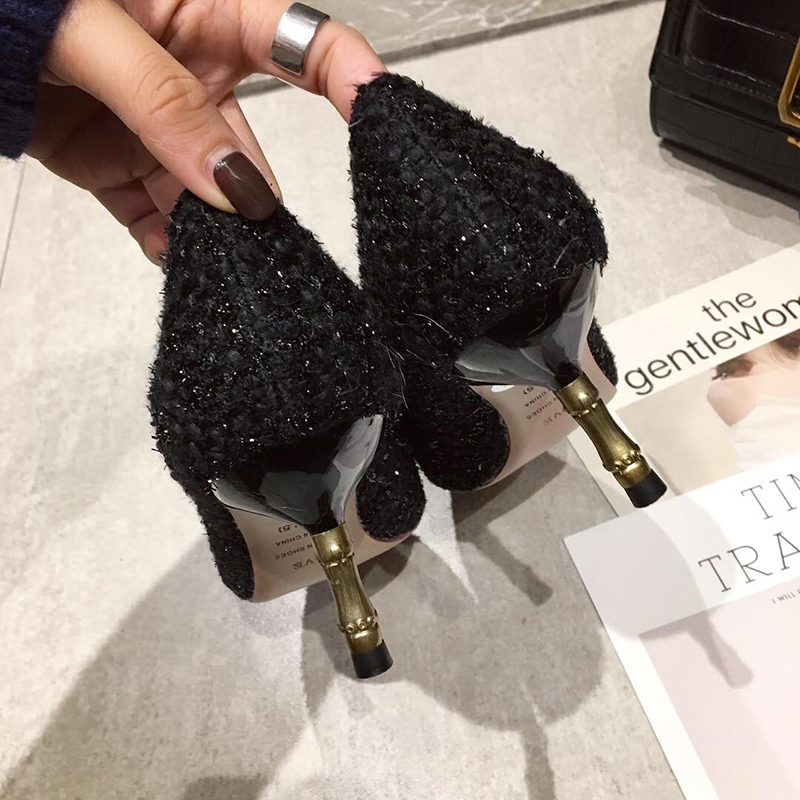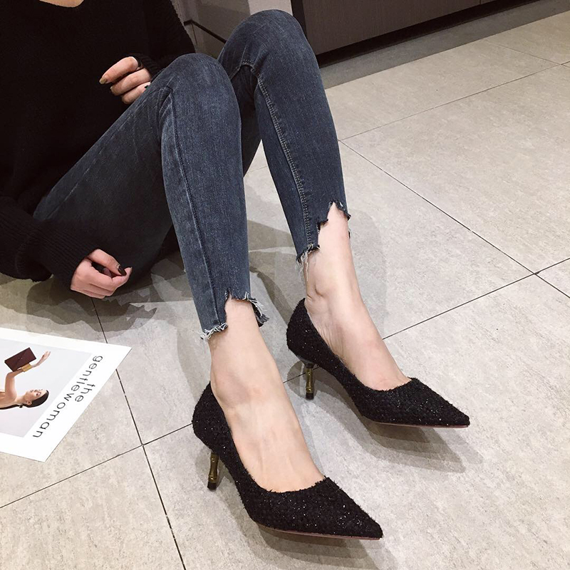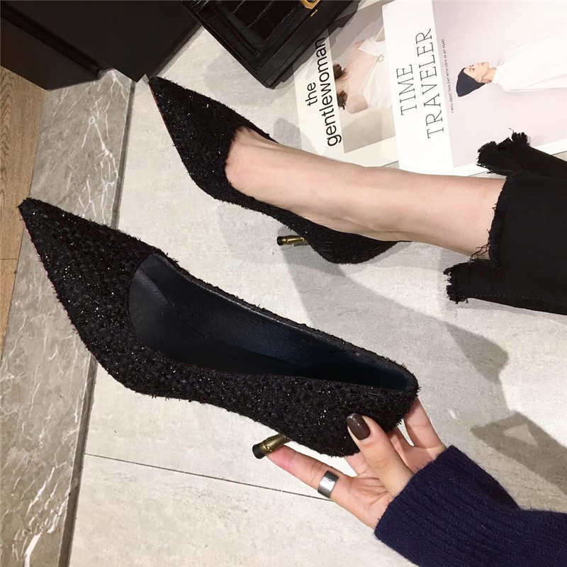 2022 Spring Summer New Black High heel Shoes Temperament Net Red 100 Hitch Style Female Fine Heel Career Single Shoes