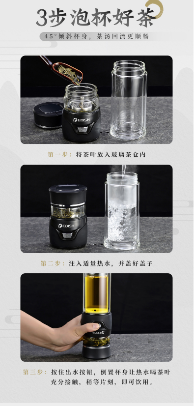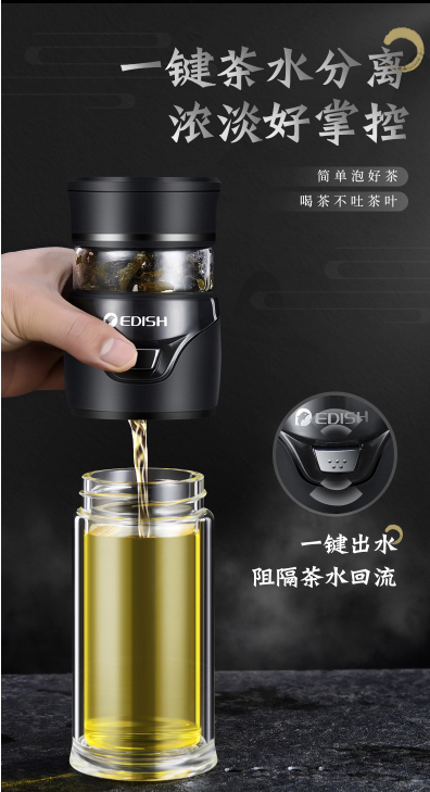 German EDISH Tea Water Separation Tea Cup Double Glass Cup Men's Portable Creative Filter Flower Tea Cup Water Mug