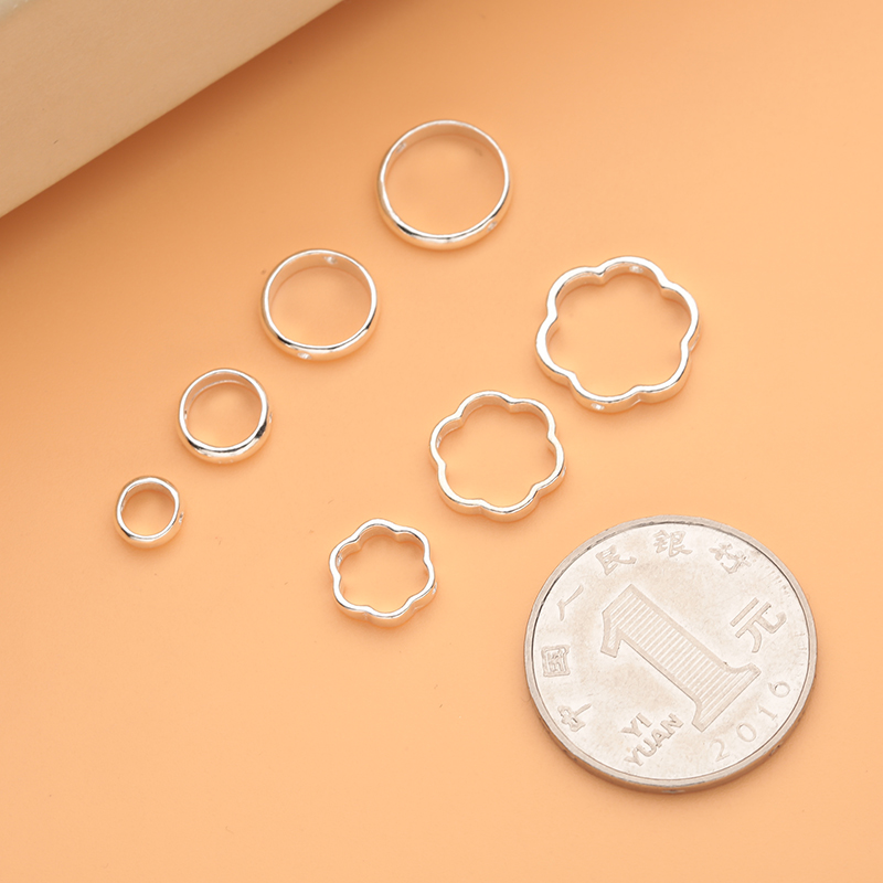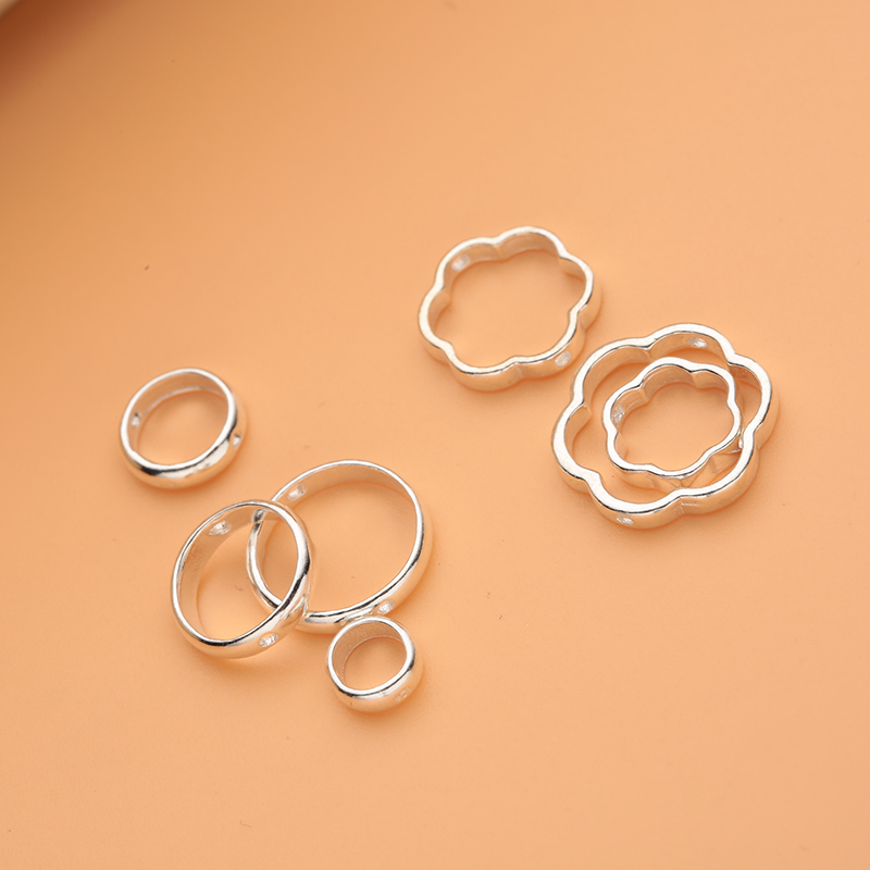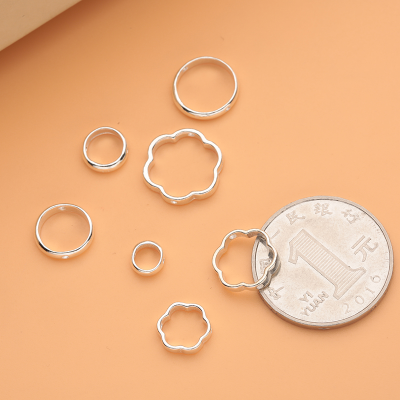 Dingxi DIY accessories accessories S925 sterling silver square ring across the flower-shaped hollow ring bead in the middle of the beads
