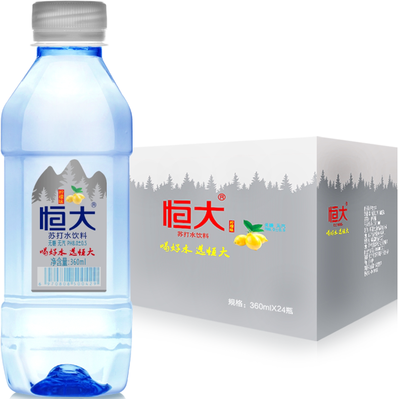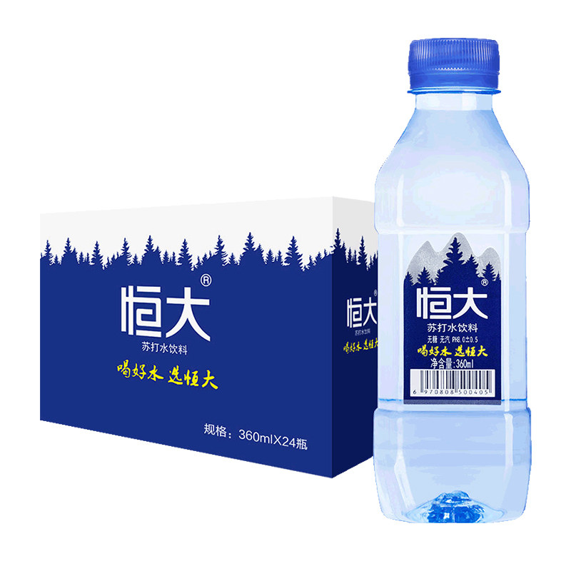 Evergrande soda soda water sugar free of sugar free alkaline non-mineral water bottle 24 bottles of the whole tank 360ml 500ml