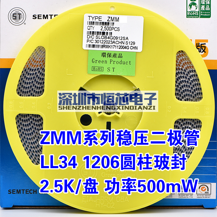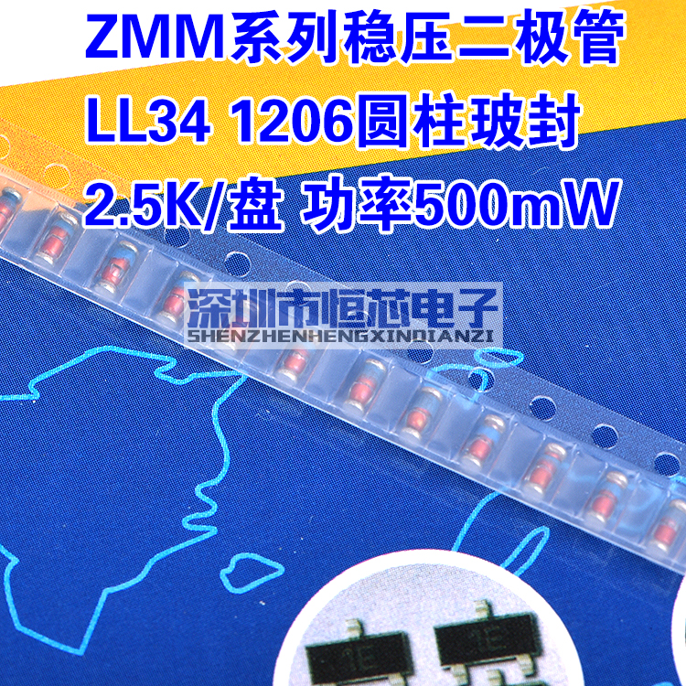 Patch voltage regulator diode ZMM3V0 LL-34 package 3V 1206 cylindrical glass seal 1 disc 2 5K