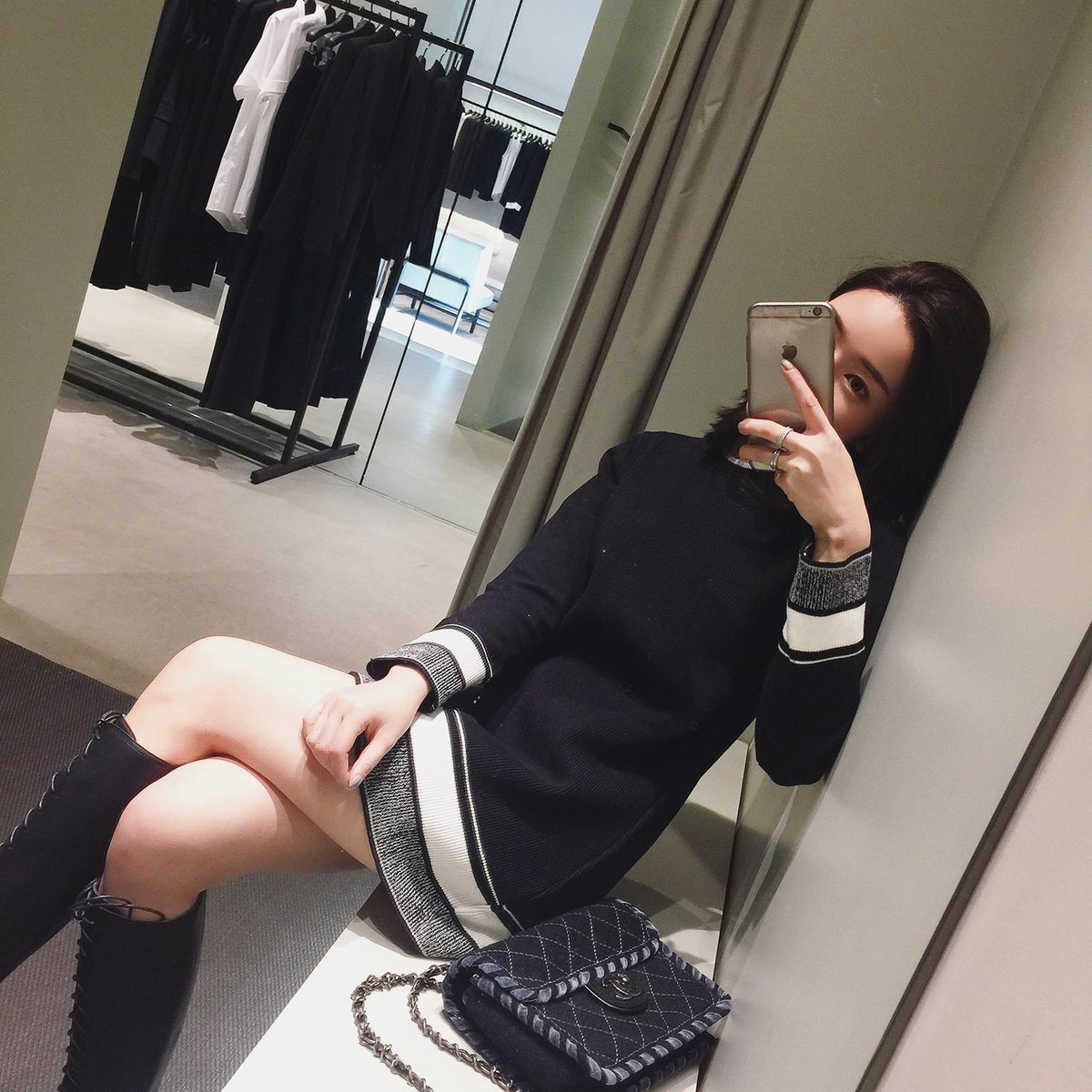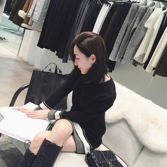 Tide Card 2021 Autumn Winter New Beating Bottom Knit Foreign Dress Medium Long Version Slim Fit 100 Hitch Long Sleeve Bottom Skirt Woman
