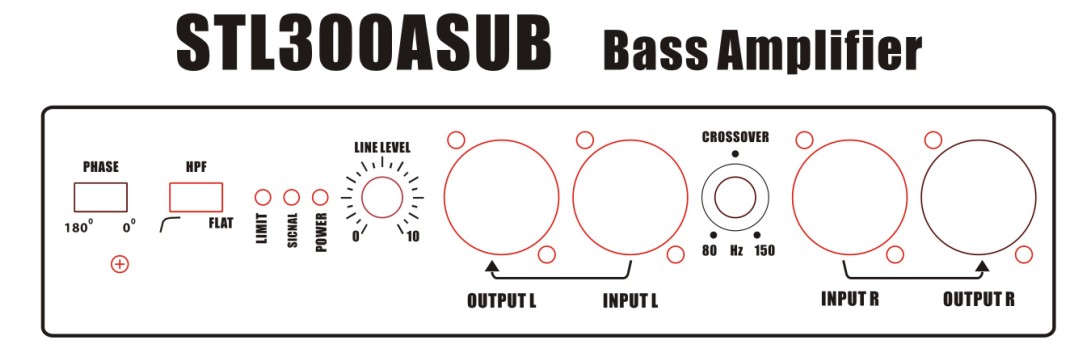 Subwoofer front panel with adjustable frequency adjustable phase Satellite speaker output low cut with overload indication