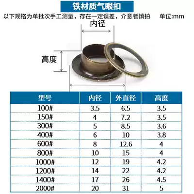 Gold and silver rivet tools, chicken eye buckle, hollow rivet, hollow rivet, air eye, buttonhole, eye buckle, cornhole Rivet