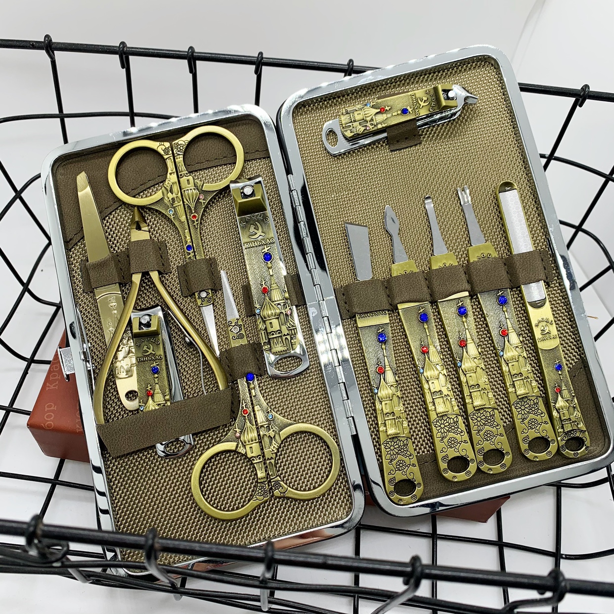 Russian hands and feet nail clippers large bronze twelve-piece set pliers gift box popular hot selling stainless steel castle period
