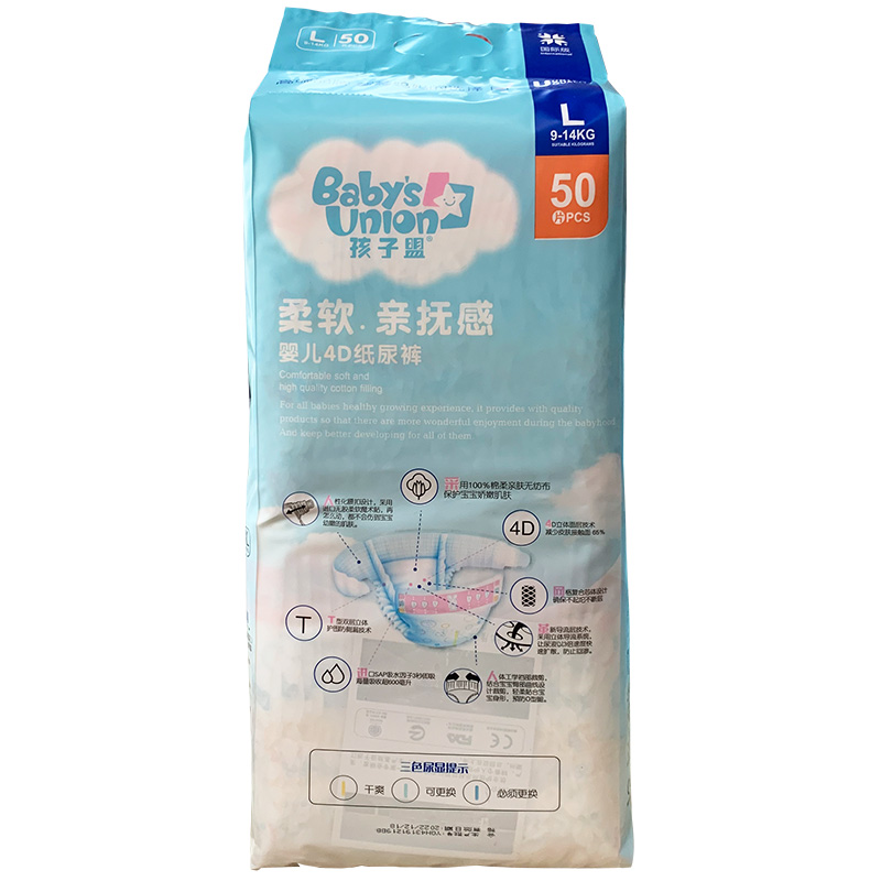 Child Union 4D baby paper diaper L50 male and female baby urine water wet and breathable dry and thin anti-leakage