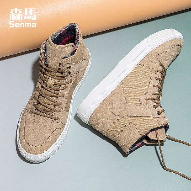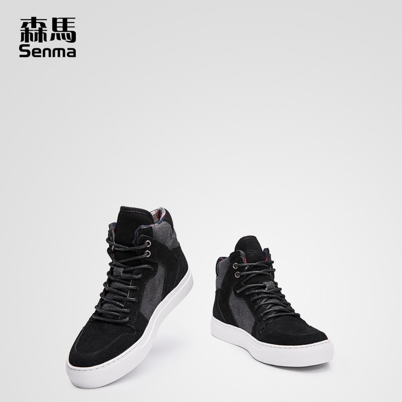 Senmar Black High Cylinder Shoes Male Korean Version Trend 100 Lap Sails Shoes Fall New Men Casual High Cylinder Board Shoes Men