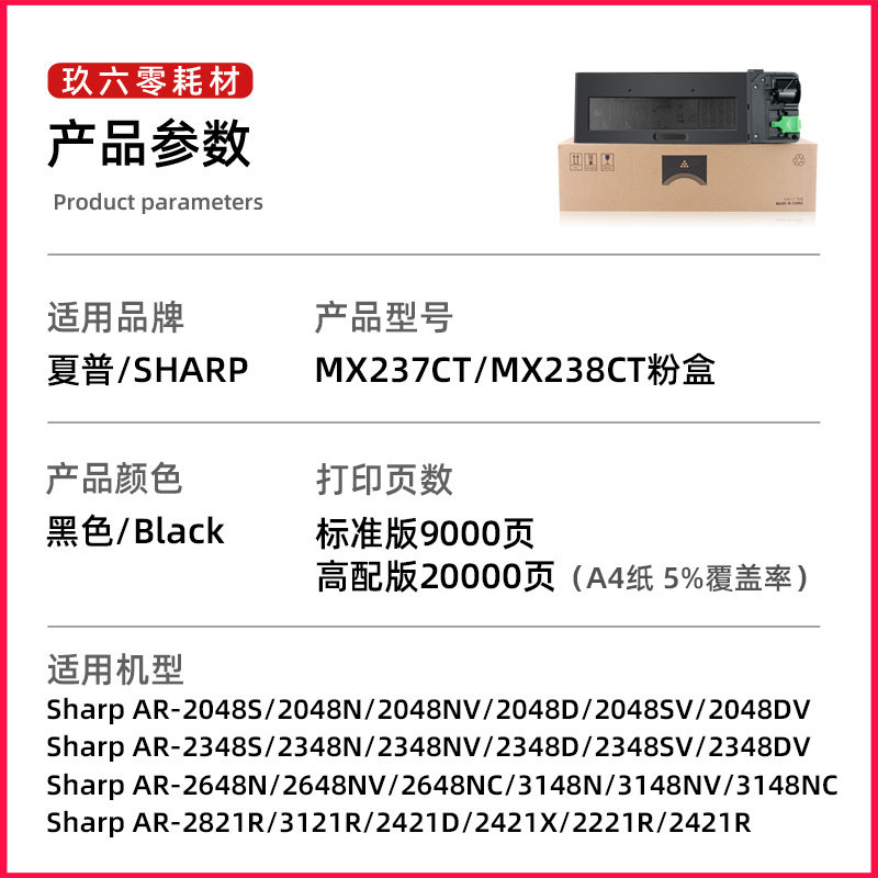(Standard edition 9000 pages) MX-238CT powder box (high worthy version 20000 pages) MX-237CT powder box