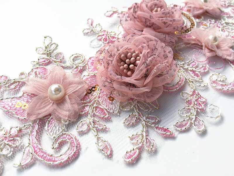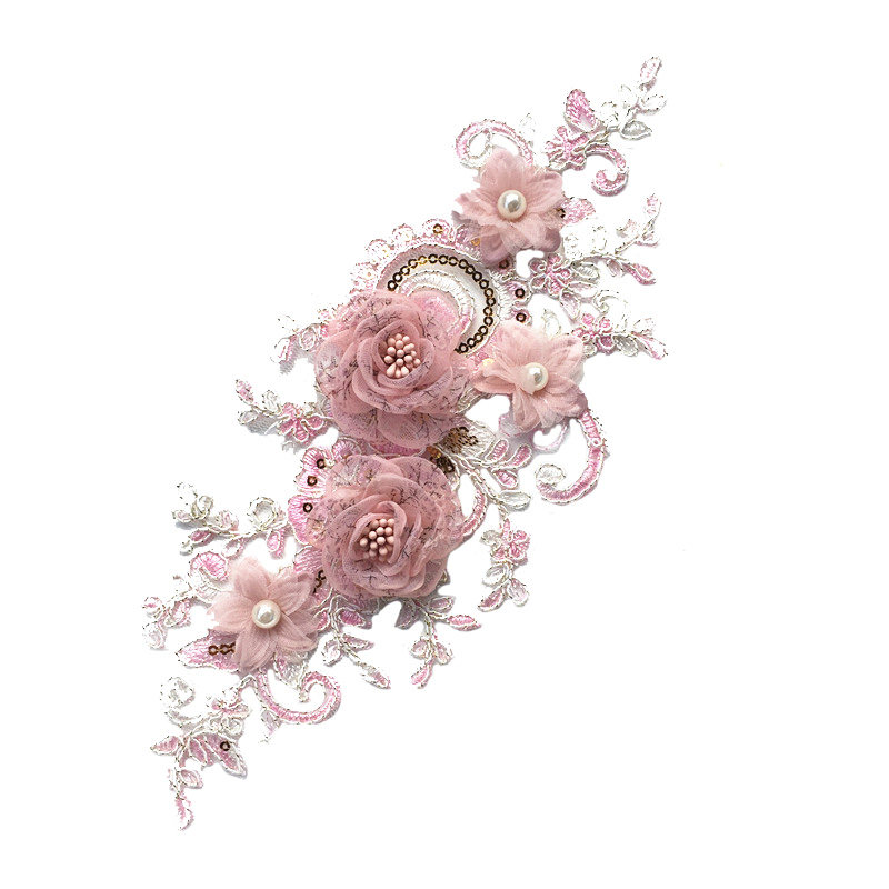 New Pink Flowers Bouquet With Great Beauty Clothing Decorations Denim shoulder pants Decorative Lace Accessories