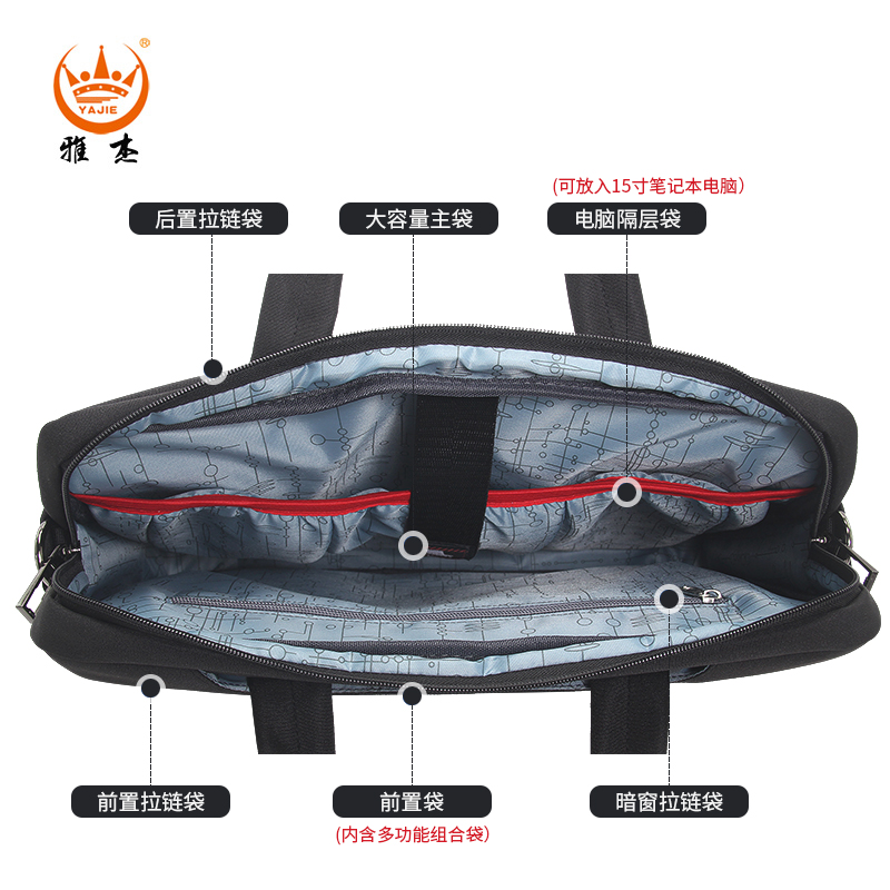 Zipped Dark Bag Mobile Phone Bag Mezzanine Zipped Bag Document Bit Computer Inserted Bag