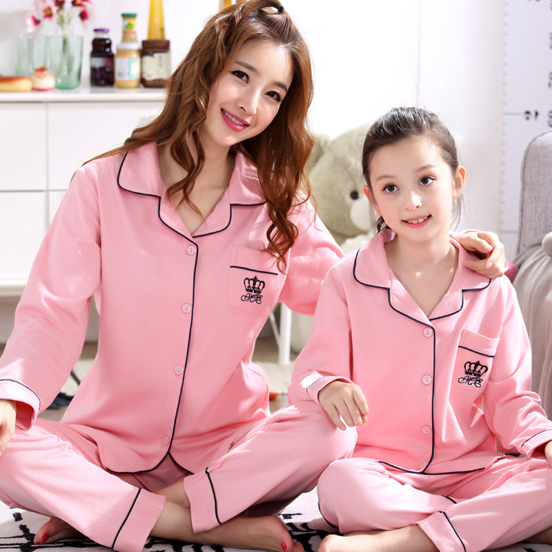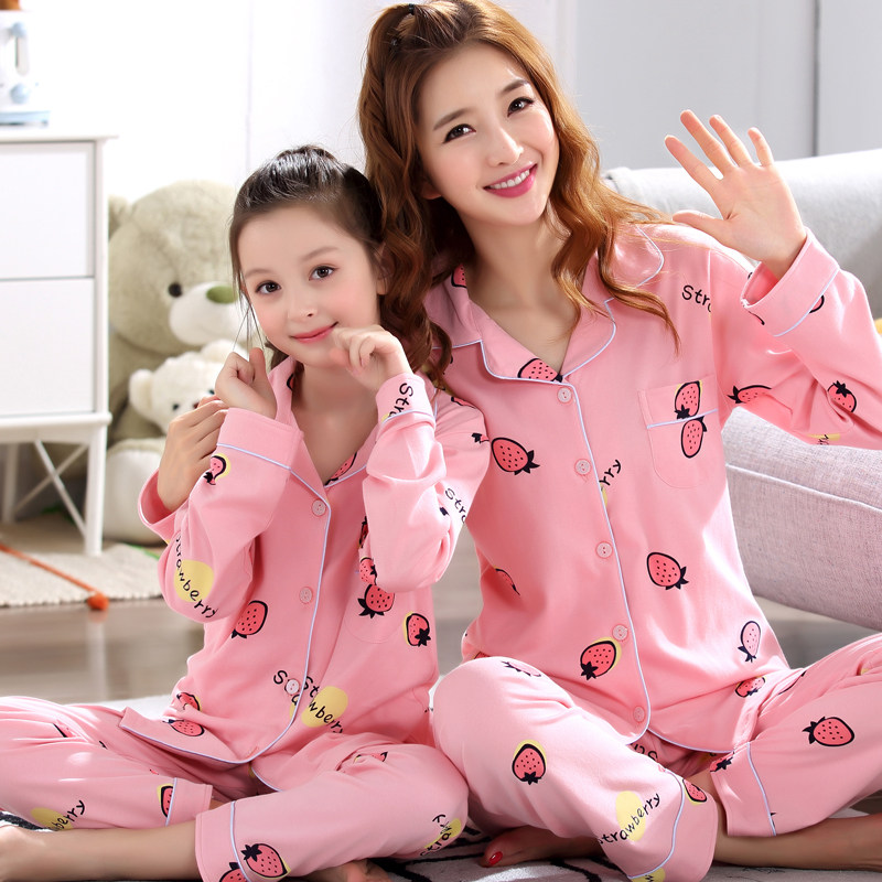 Fall long sleeve mother and daughter pajamas pure cotton suit spring and autumn lovely parent and child clothing children's home clothing girl child