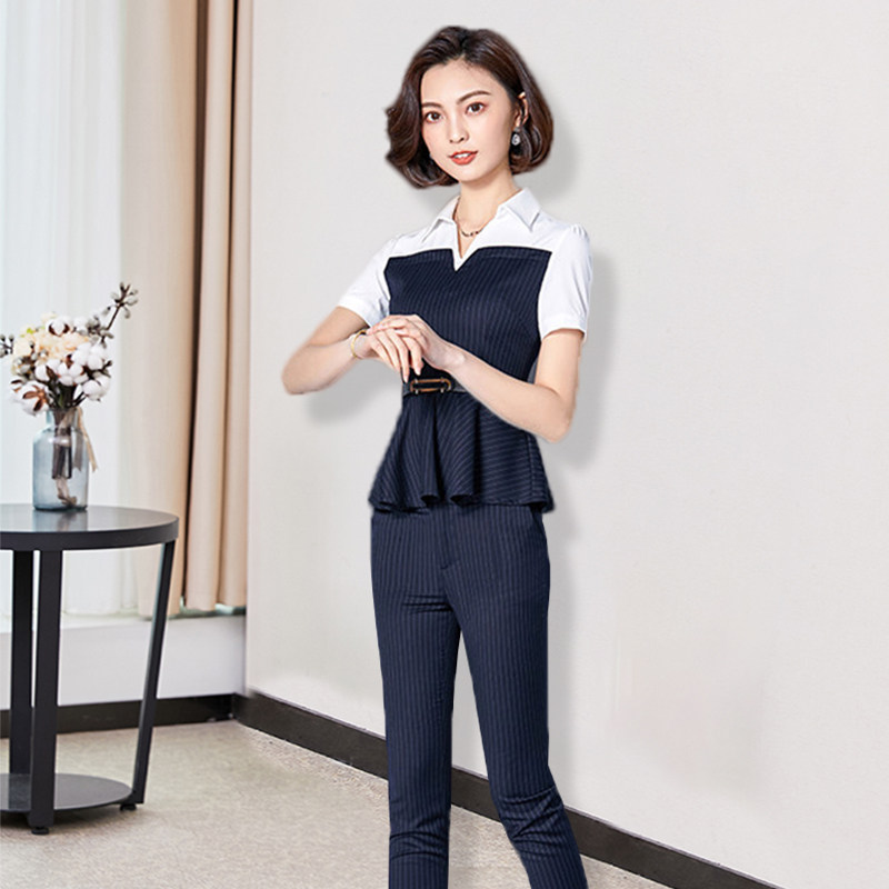 New Career Set Female Young Perfume OL Long Sleeve Strip Hotel Front Desk Interview Worksuit