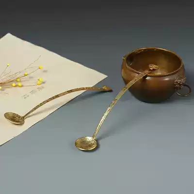 Song Dynasty ordered tea refined handmade brass tea powder spoon Tang Dynasty decoction salt spoon delicate copper spoon tea powder spoon