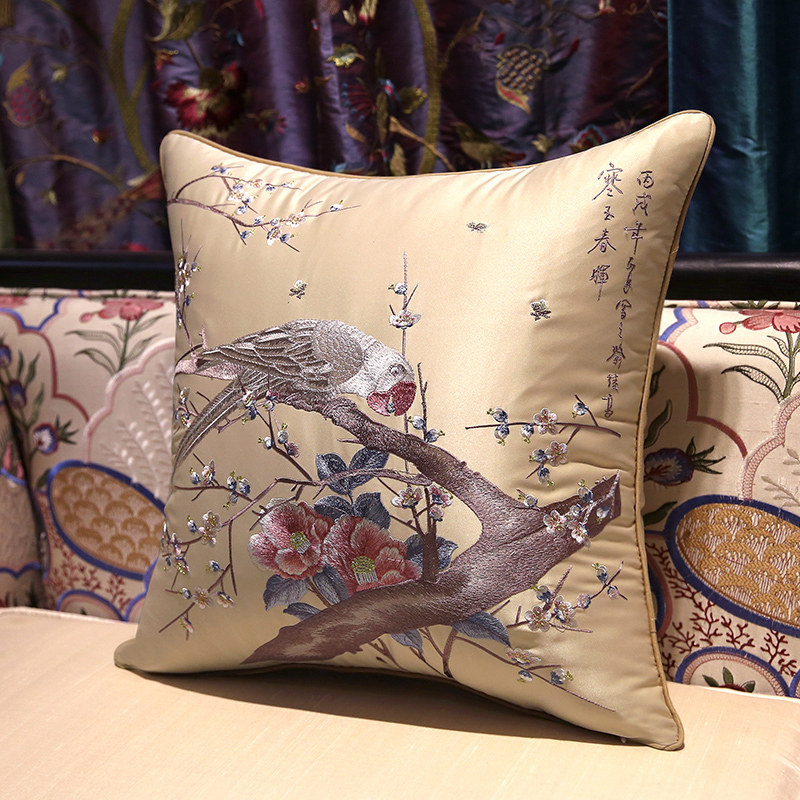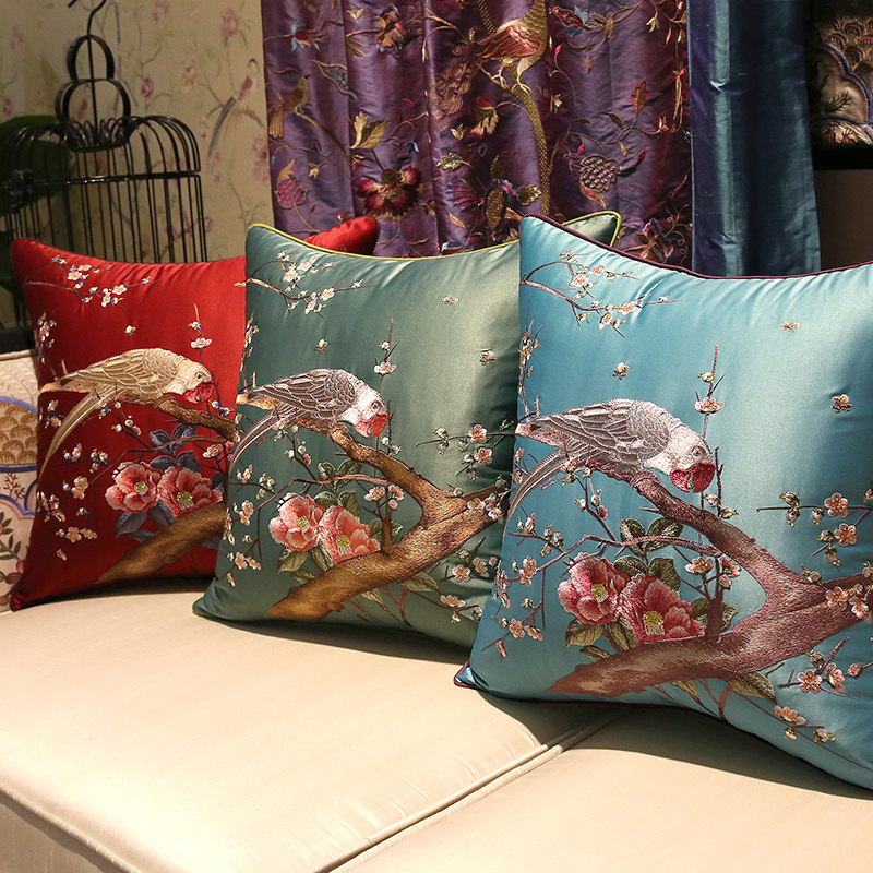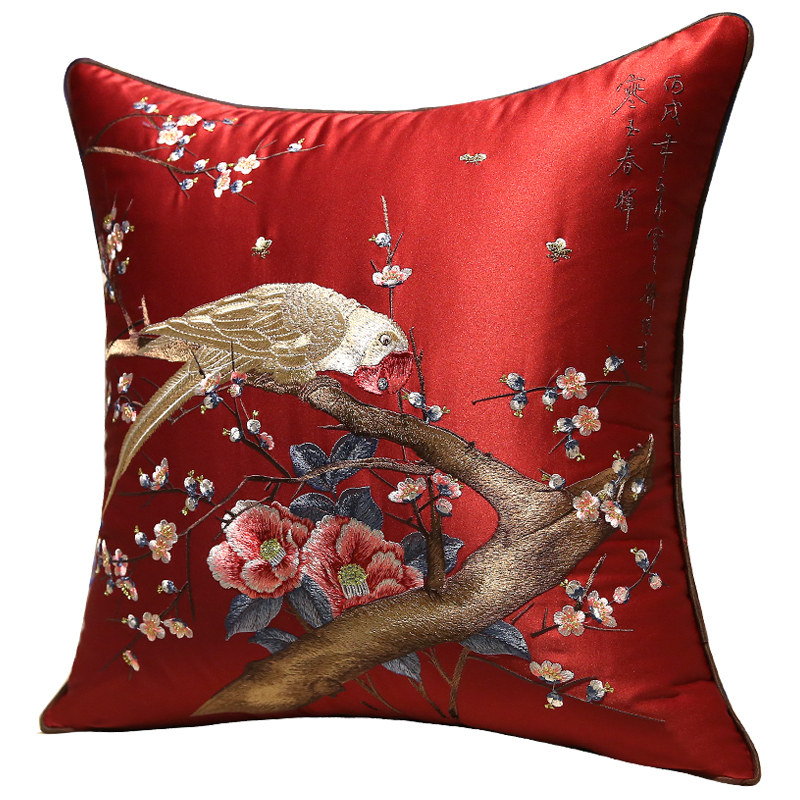 Chinese Vintage Embroidery Hug Pillow Red Wood Sofa Cushions China Wind Leaning Pillow Chair Backrest Square Without Core Sleeve
