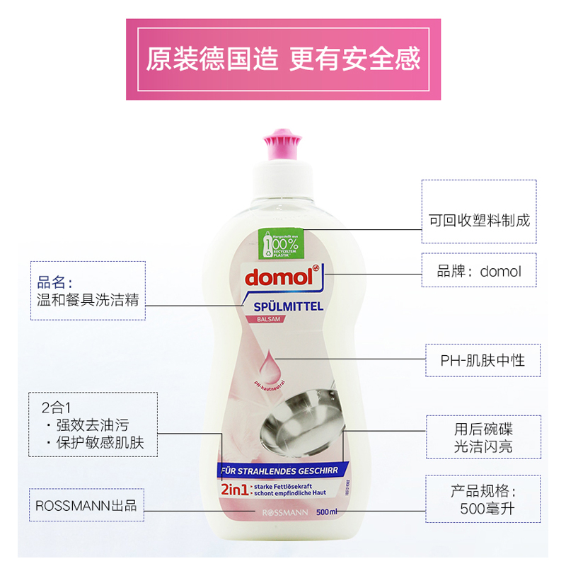 German imports domol tableware wash and concentrate dishwashing liquid detergent without injury gentle skincare