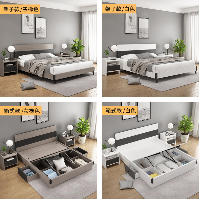 Nordic bed modern simple 1 5 m1 8 meter double bed rental room 1 2 meter high box storage bed panel style master bedroom bed