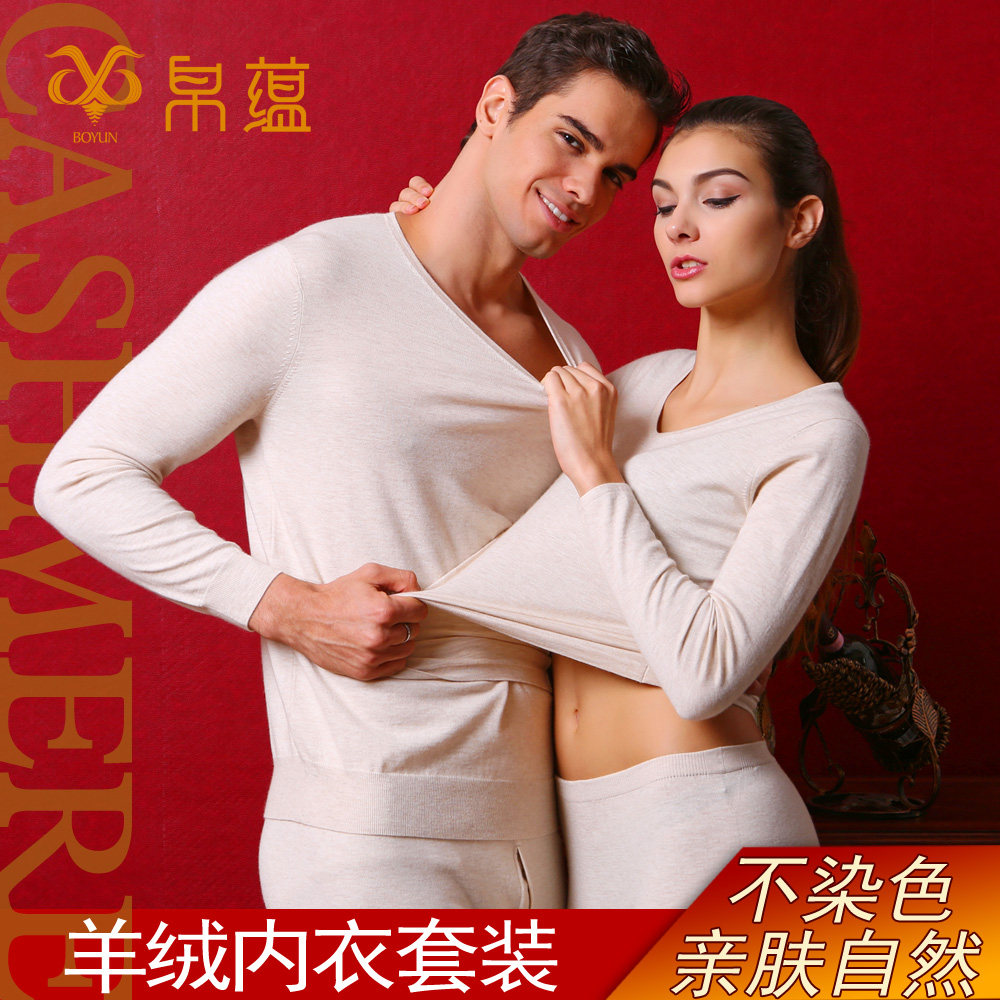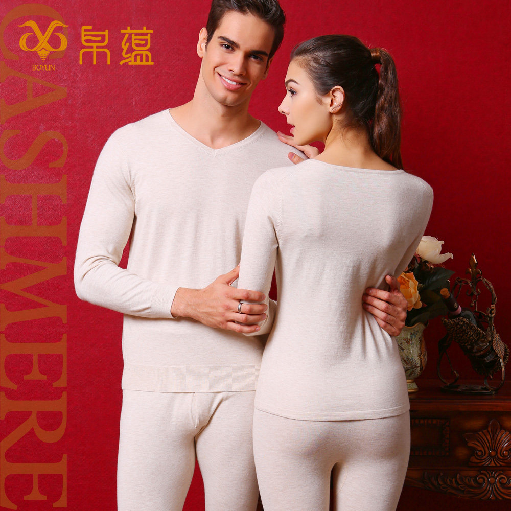 Cashmere lingerie men's cashmere thermal underwear suit women's autumn and winter one-piece bottom autumn clothes and autumn pants thin round collar knit