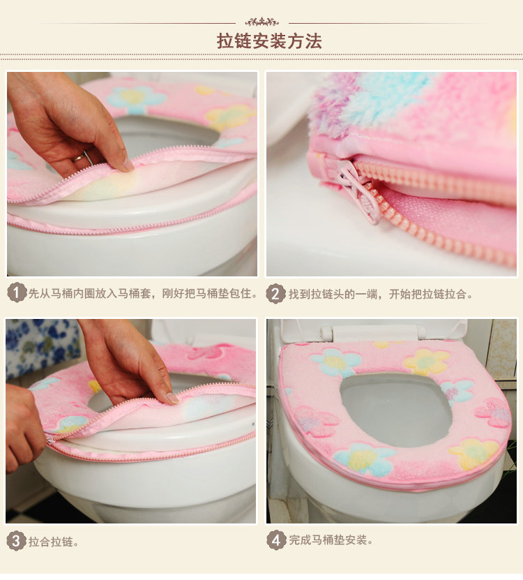 Toilet pad Universal thickened zipper Autumn and winter waterproof toilet seat toilet cover Toilet ring Household toilet seat cushion