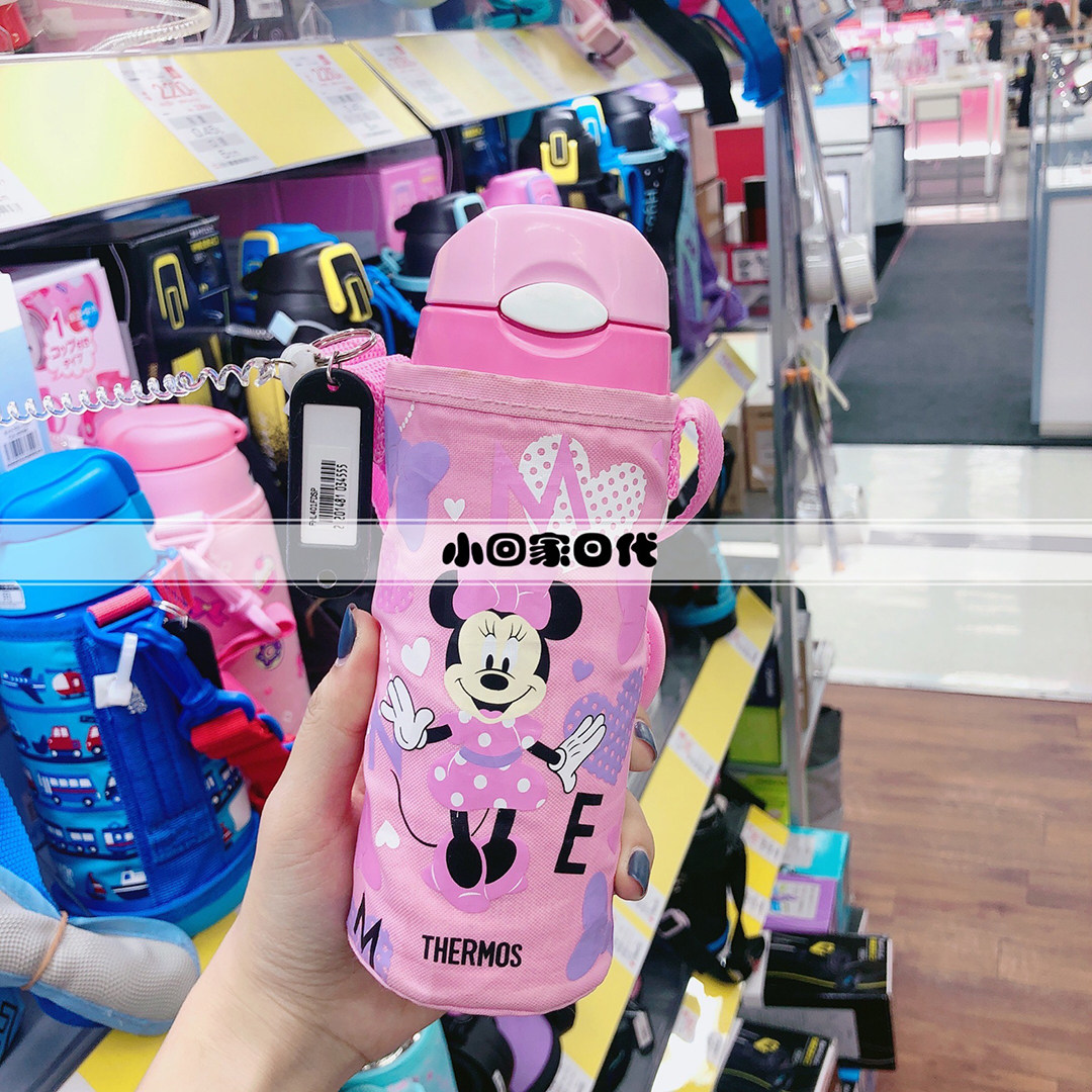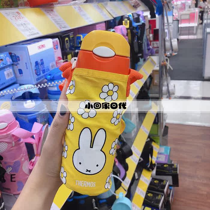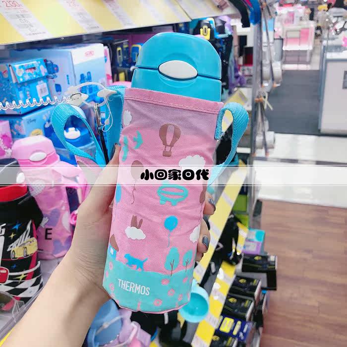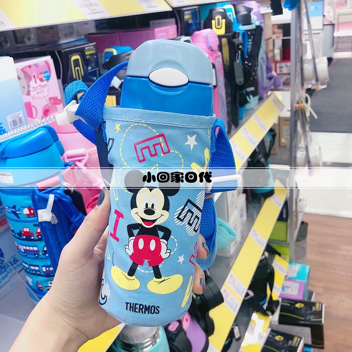 Japanese catering magician Children's straw insulated cup stainless steel with cup cover shoulder strap skew 400ml FHL-400