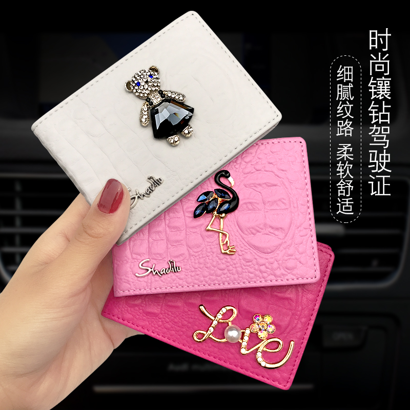 Driver's license leather case Female cute driving license cover Protection certificate Motor vehicle driver's license clip This set of multi-functional two-in-one