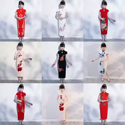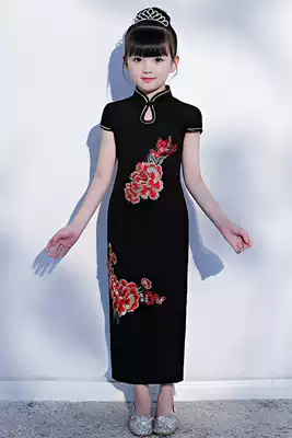 Girls cheongsam skirt autumn short sleeves National style foreign school children's catwalk piano performance clothing cotton winter Chinese style