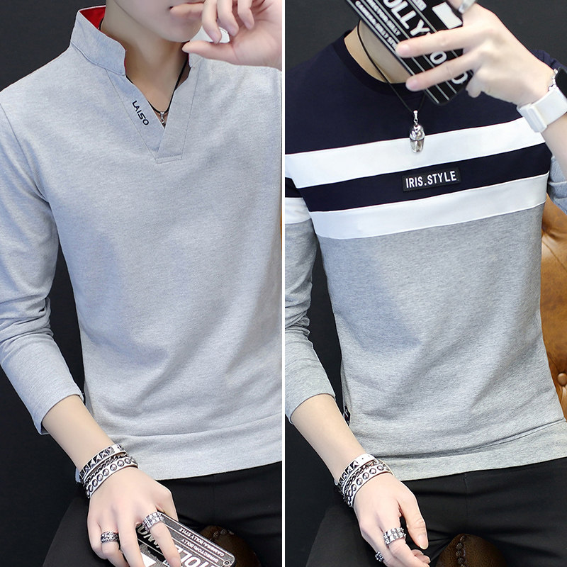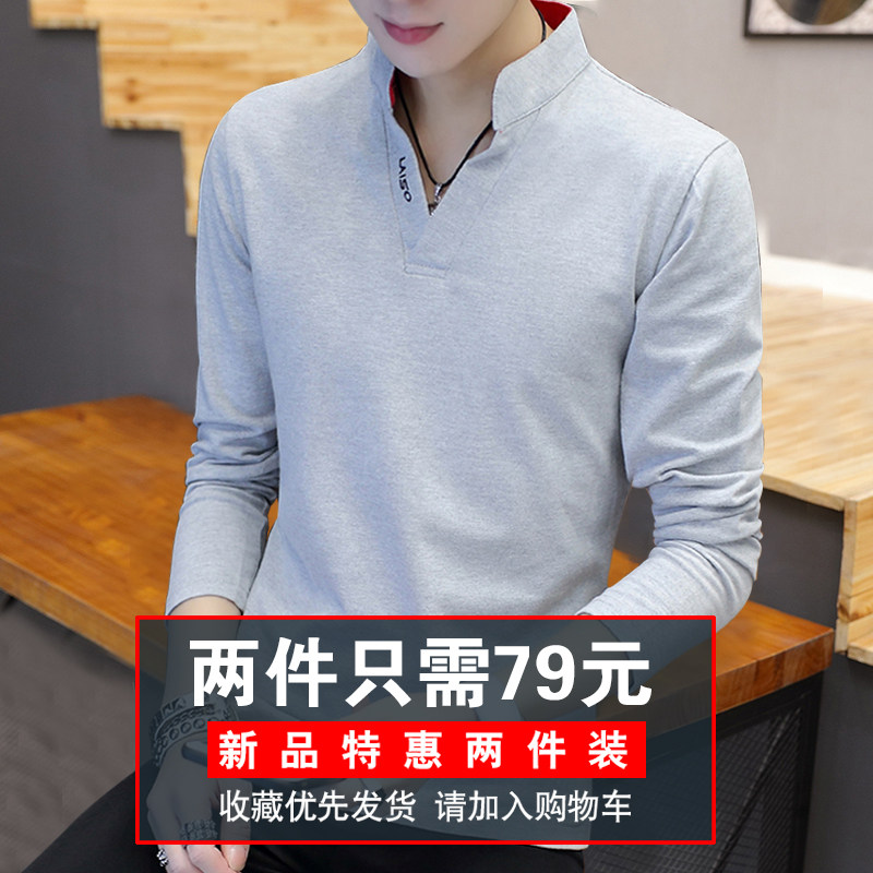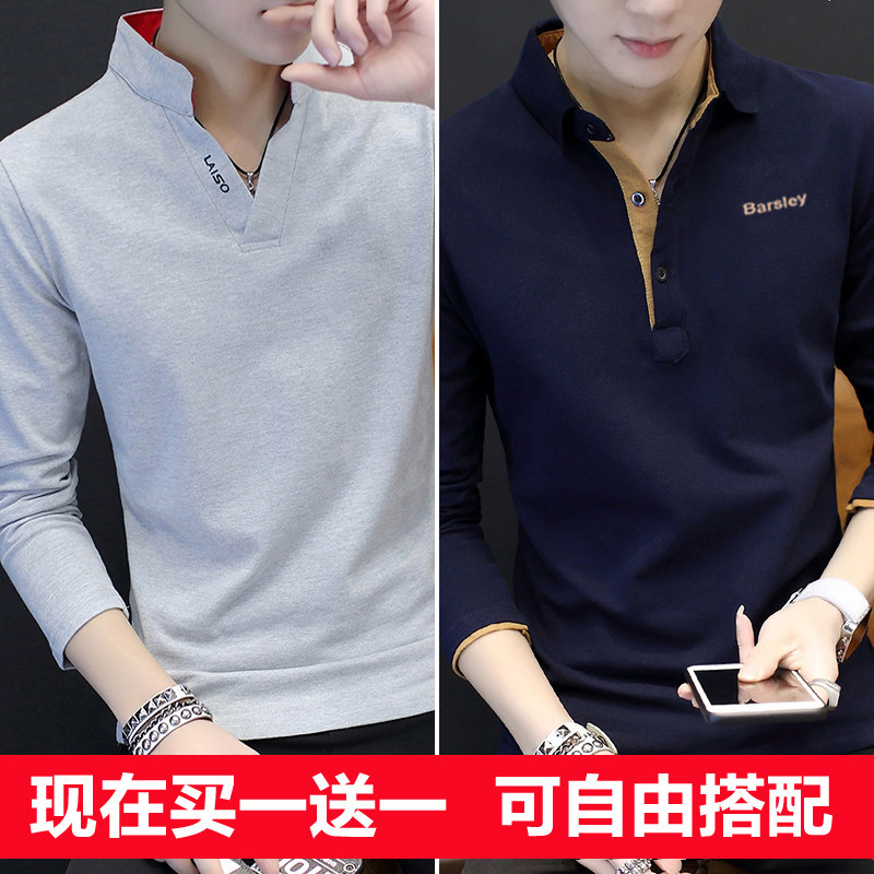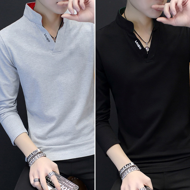 Spring autumn season new 2022 men Long sleeves T-shirt V neckline with pure cotton inner lap shirt jacket for men's clothes