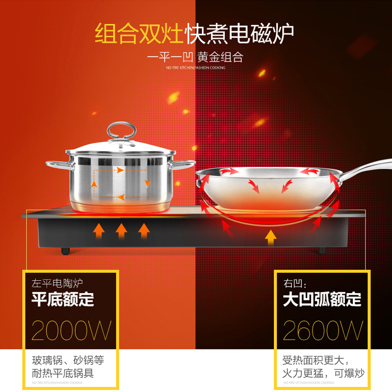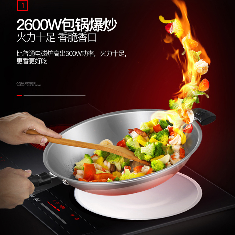 Shangpentang double-headed black crystal furnace Household high-power stir-frying one flat one concave imported plate induction cooker Double induction cooker