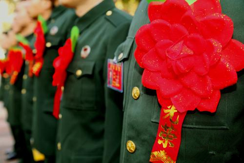 Chinese style light glory flower silk cloth honorable discharge of the Chest Flower Recruits of the Discharged Kindergarten and Exemplary Mark Soldiers
