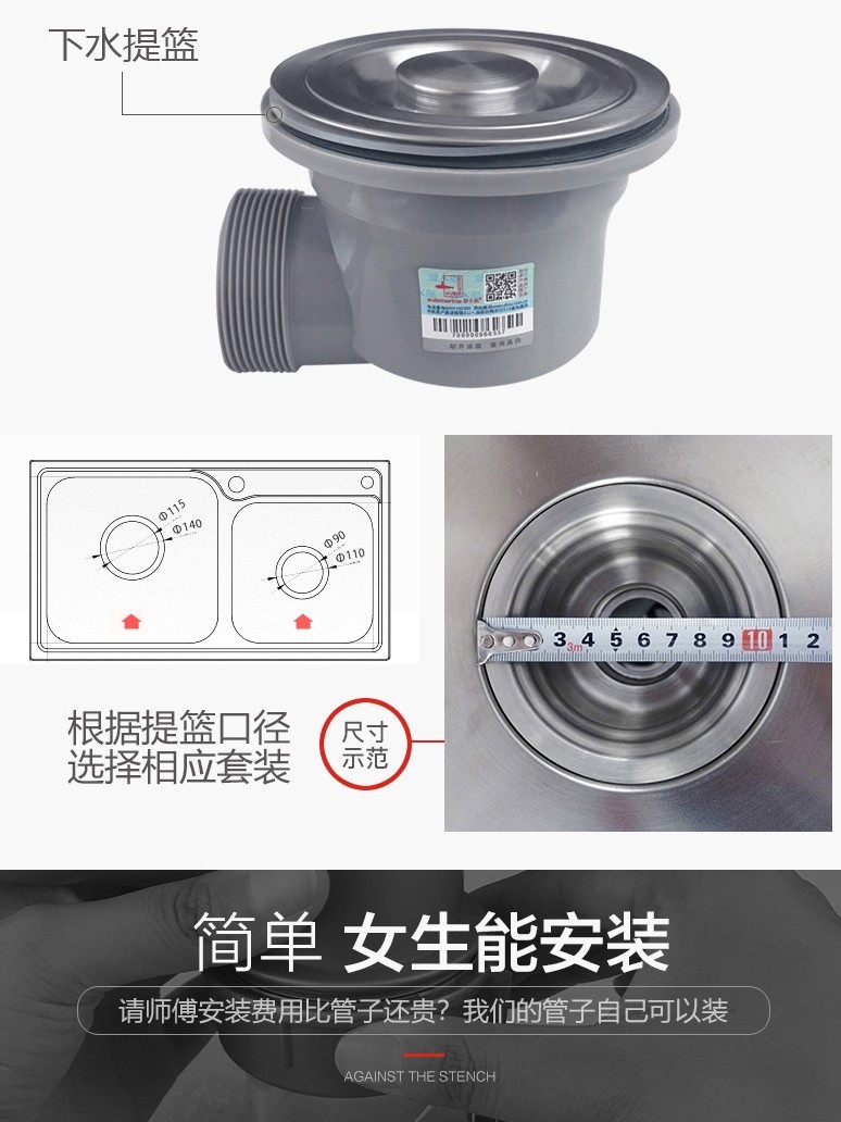 Submarine kitchen sink Double dish basin Sewer pipe accessories Lifting cage set Pool stopper Drainage deodorant anti-blocking plug