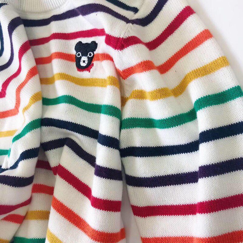 (Joe's) Spring and Autumn New Products Boys and Girls Rainbow Striped Knitted Pullover Children's Cotton Thread Thin Knitted Sweater