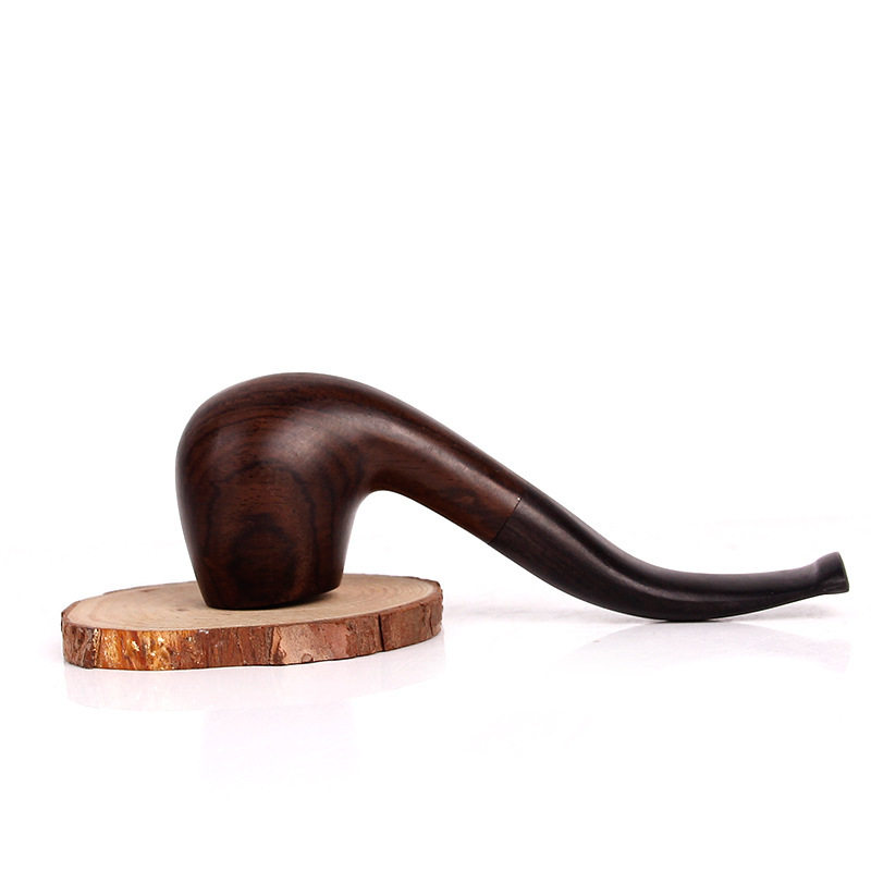 All-wood solid wood handmade pipe ebony smoking set retro old-fashioned curved hammer classical portable delivery accessories