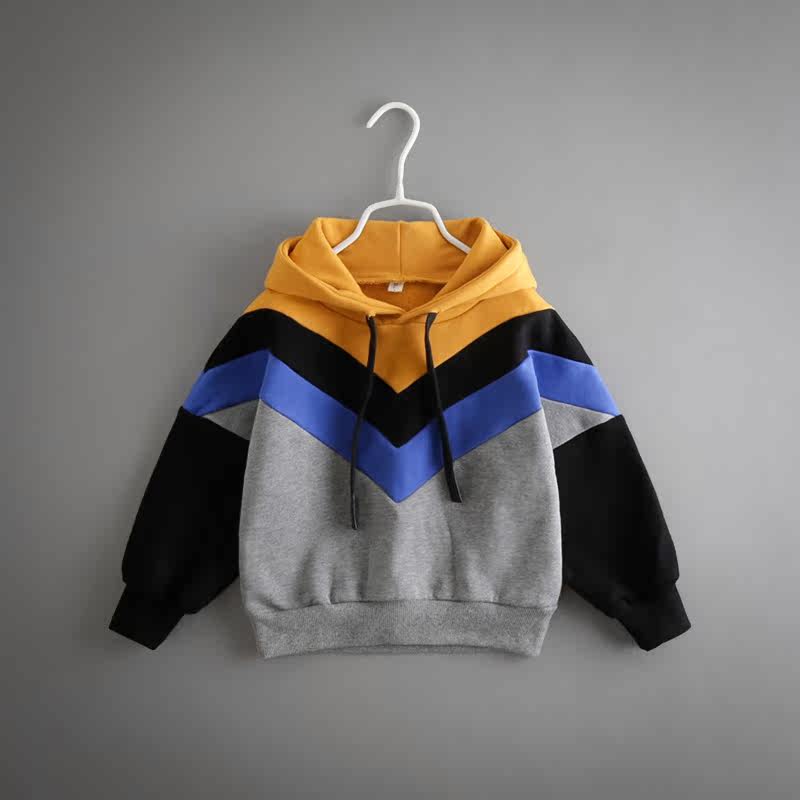 Boys' sweater new autumn clothes medium and large children's clothes Korean version infant jacket children's casual color matching Western style hooded sweatshirt