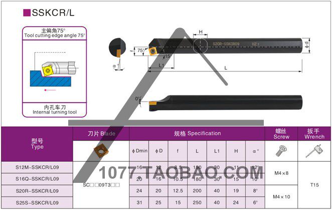 Numerical control knife-lever 75-degree inner hole S12M S12M S16Q S25S-SSKCR09 S25S-SSKCR09 SSKCL09 SSKCL09