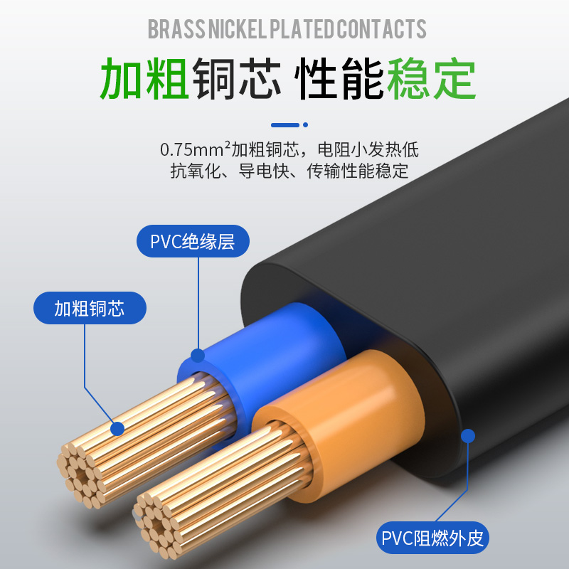Round-inserted two-core 2 holes 8 words power cord Eupeau gauge digital camera TV speaker 1 5 m pure copper