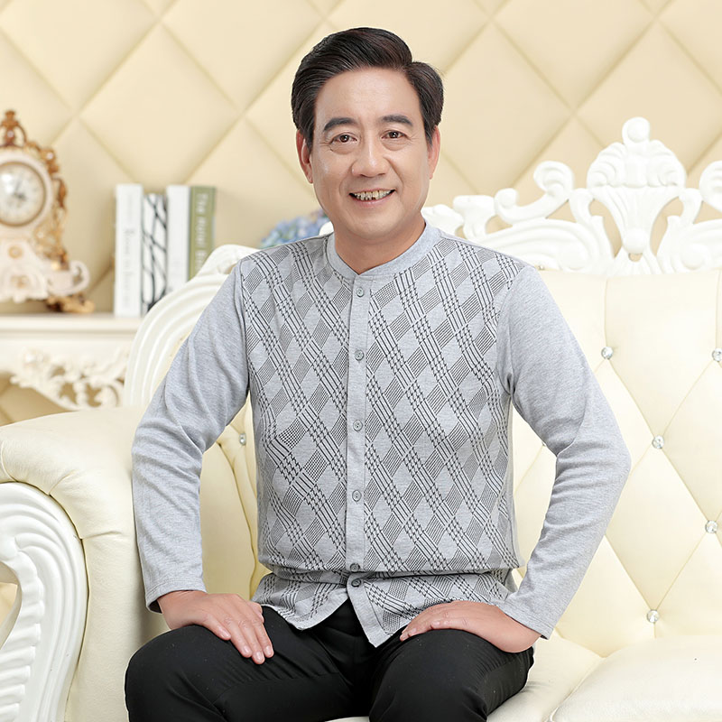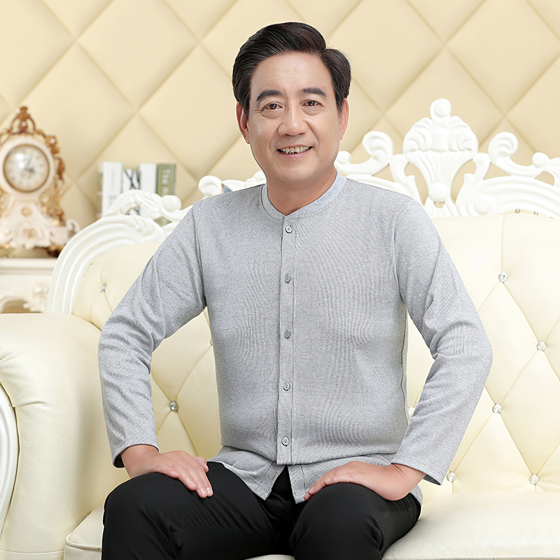 Middle-aged cardigan autumn coat men buckle cotton single-piece top heating coat cardigan elderly cotton sweater men