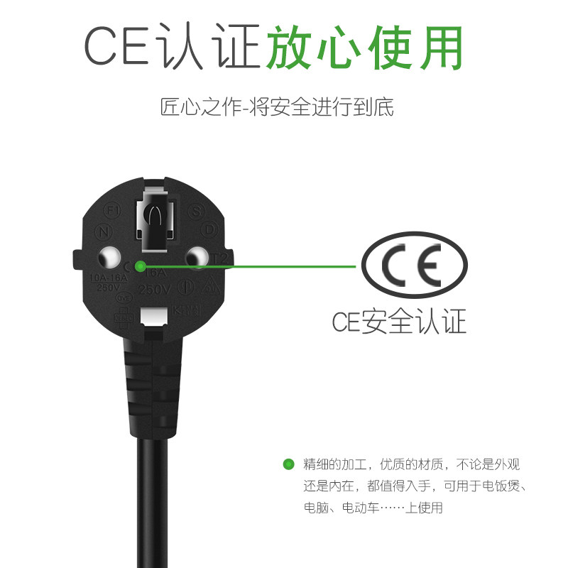 European standard chassis power cord Computer desktop monitor plum tail power cord 0 75 square