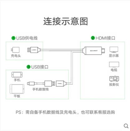Green Link mobile phone connected to TV line mhl to hdmi Android Apple X same screen line HD ipad video converter - Taobao