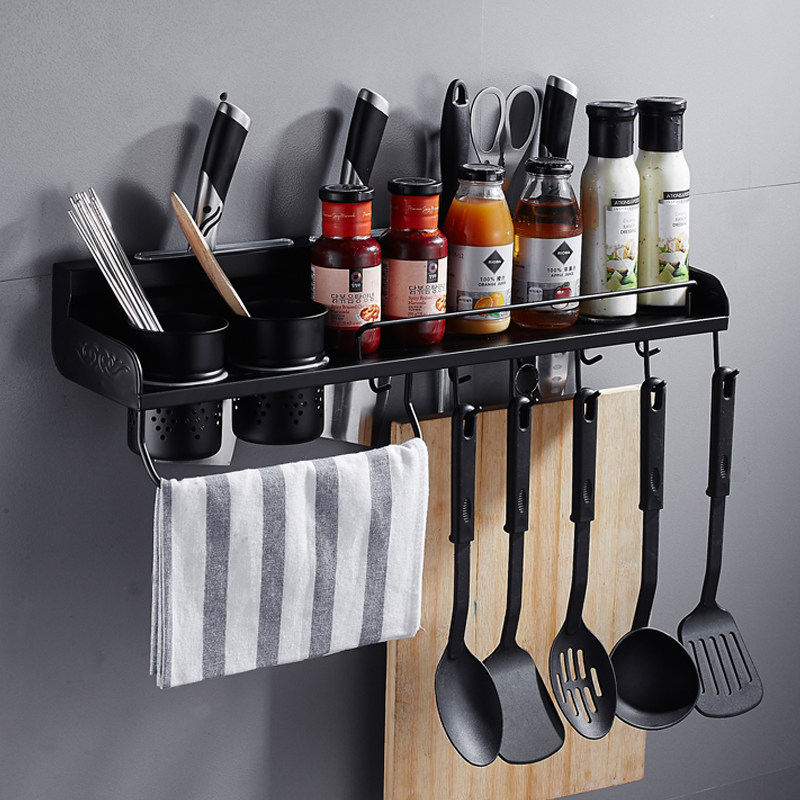 Black Kitchen Racks 304 Stainless Steel Seasonings Rack Wall-mounted Tool Holder Hook American Pendant Free