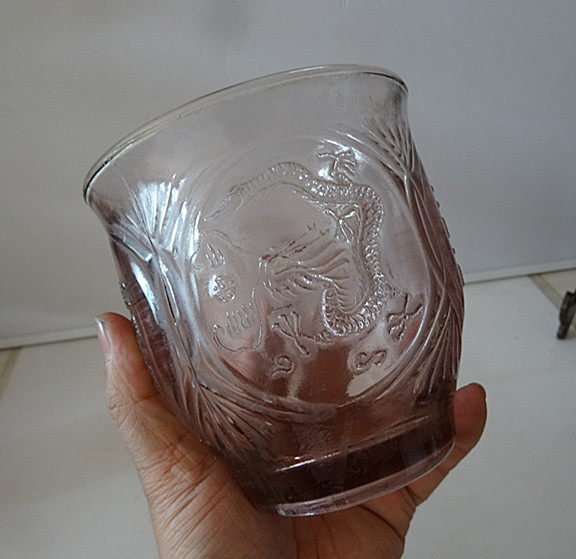 Old glass happy word jar Dragon and Phoenix colorful candy jar Small fish tank Nostalgic old home movie props full product physical photo