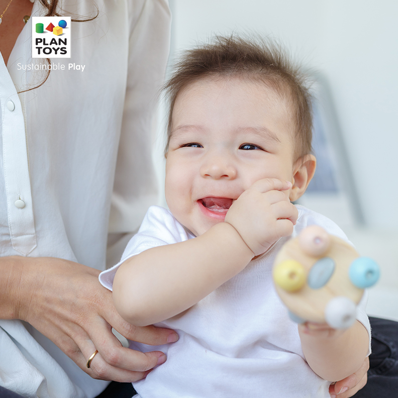 PlanToys Bell Rings Makaron Solid Wood Children Newborn Baby Hand to Pass and Kind Toys