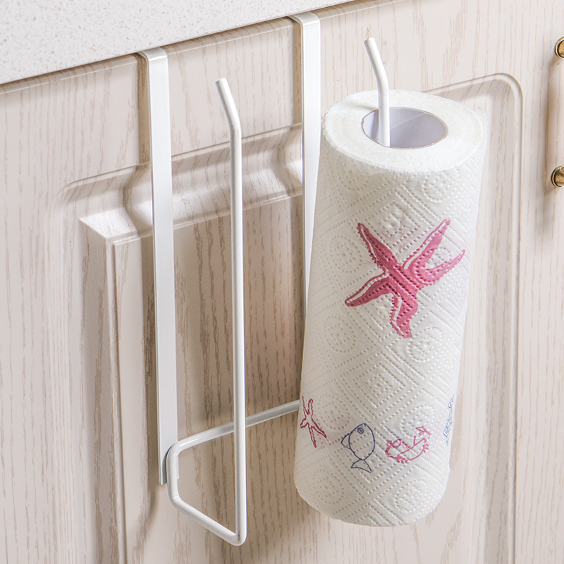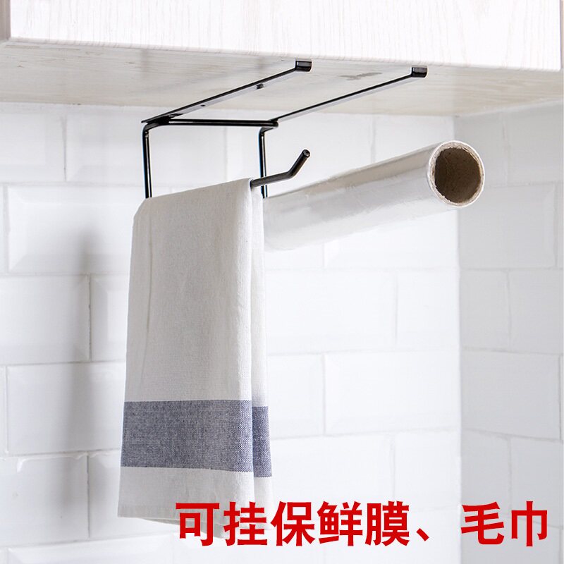 Kitchen roll toilet paper rack Integral cabinet paper towel rack Non-perforated towel hanging rack Wrought iron cling film storage shelf Wall-mounted