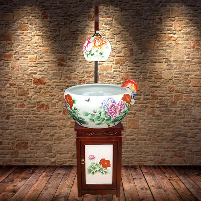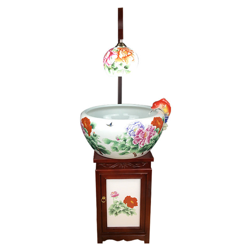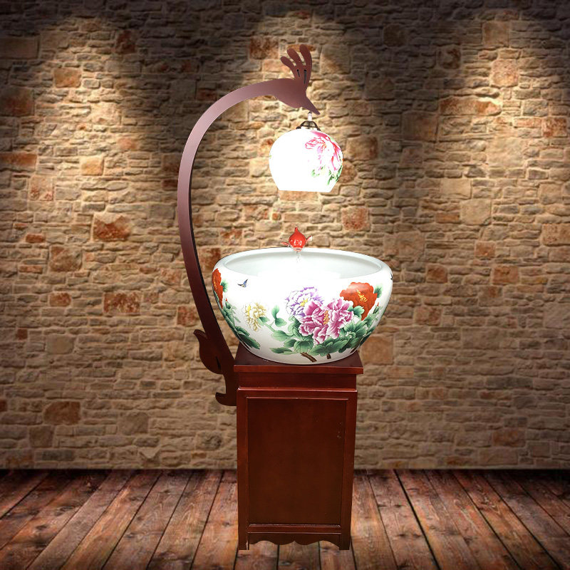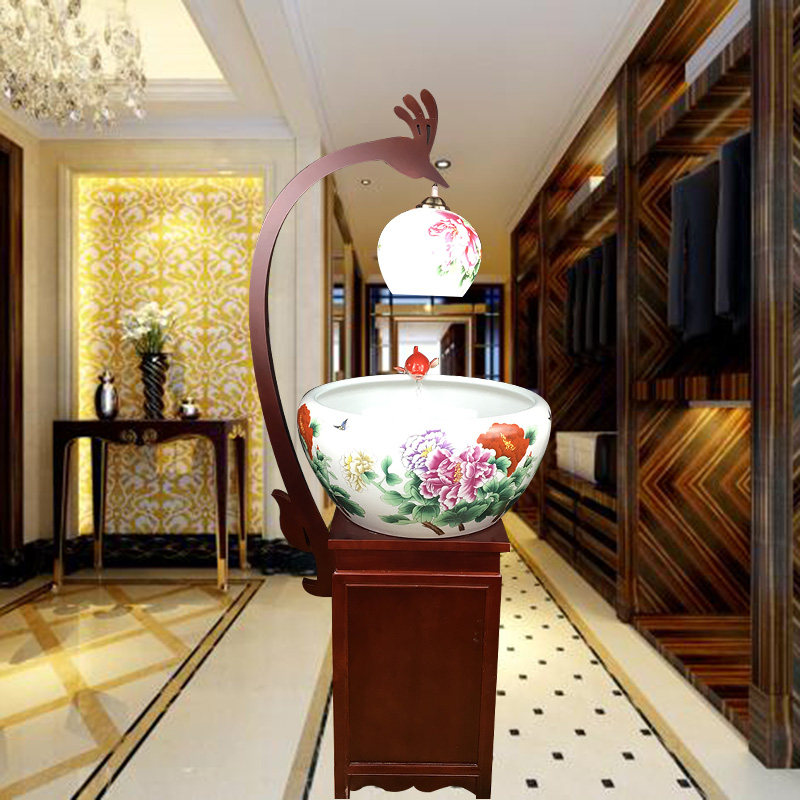 New Jingdezhen ground floor ornamental fish cylinder with lamp ceramic fish tank pendulum pieces modern hotel company fish tank with cabinet