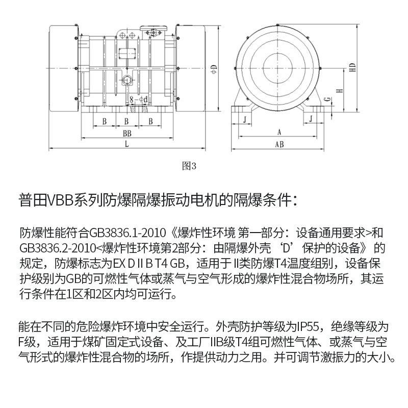 Putian VBB explosion-proof vibration motor three-phase 2468 flameproof vibrator motor 13KW180KN powder screen cutting