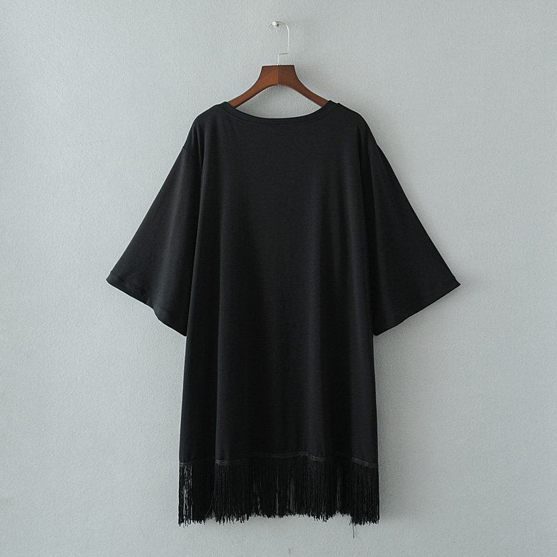 Gugujia custom large size women's clothing fat MM200 catties plus fertilizer to increase loose bottoming skirt wild tassel stitching T-shirt