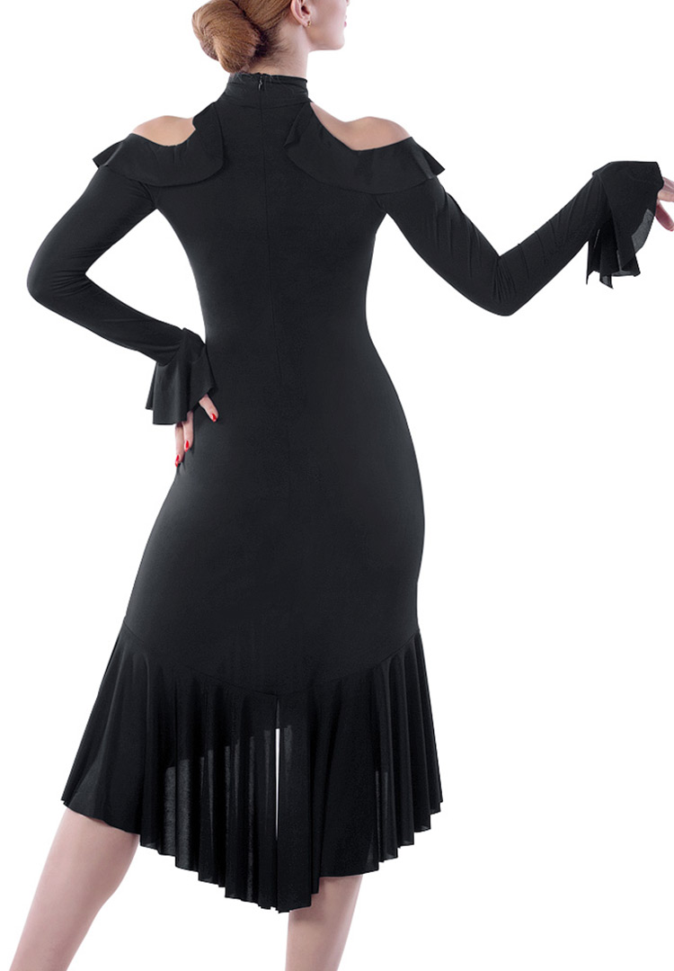 Exotic dance Latin dancer Costume Women Adults Practice 2018 new long sleeves Shoulder Open Fork Hem 22