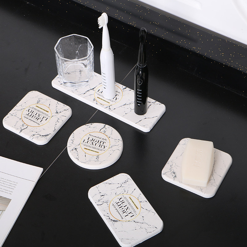 Marble-patterned diatom mud coaster ins wind Nordic insulation pad water-absorbing quick-drying non-slip diatomite soap pad