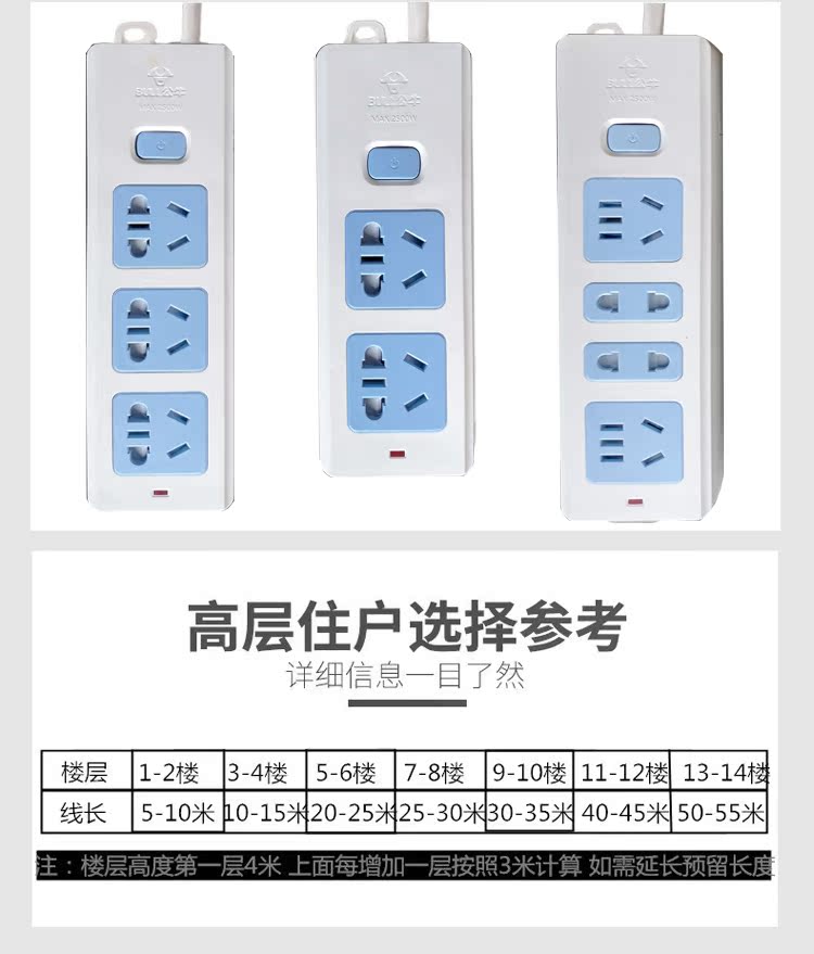 Bull plug-in row long-line socket wiring board household 3 5 8 10 20 meters porous extension line with line plug board