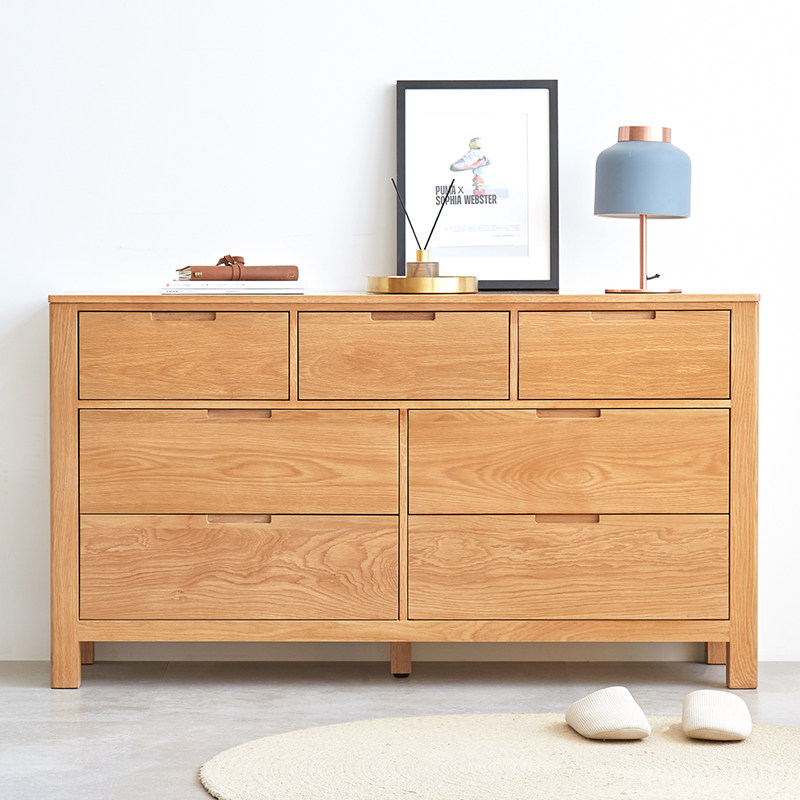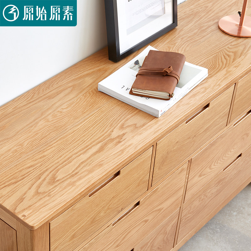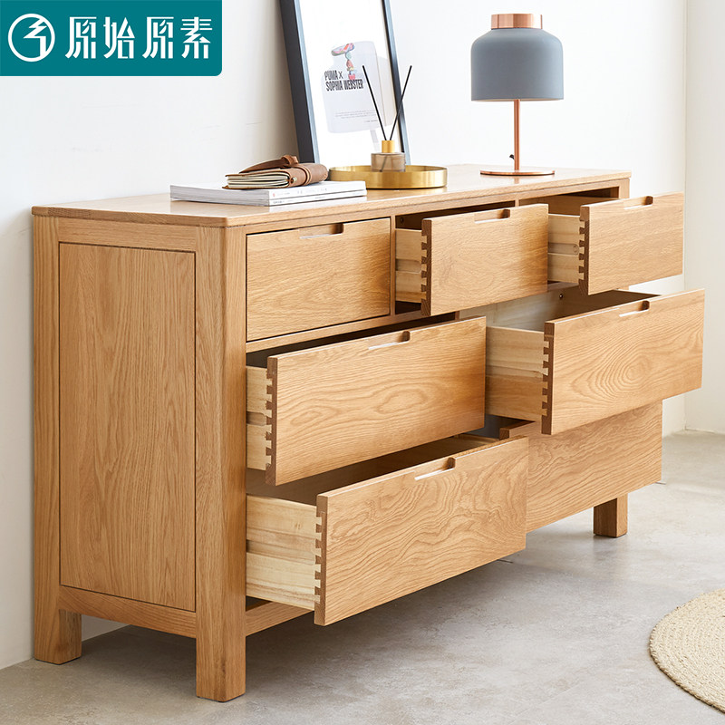 Original original full solid wood five-bucket seven-bucket cabinet Nordic modern simple bedroom furniture Oak storage cabinet A3032