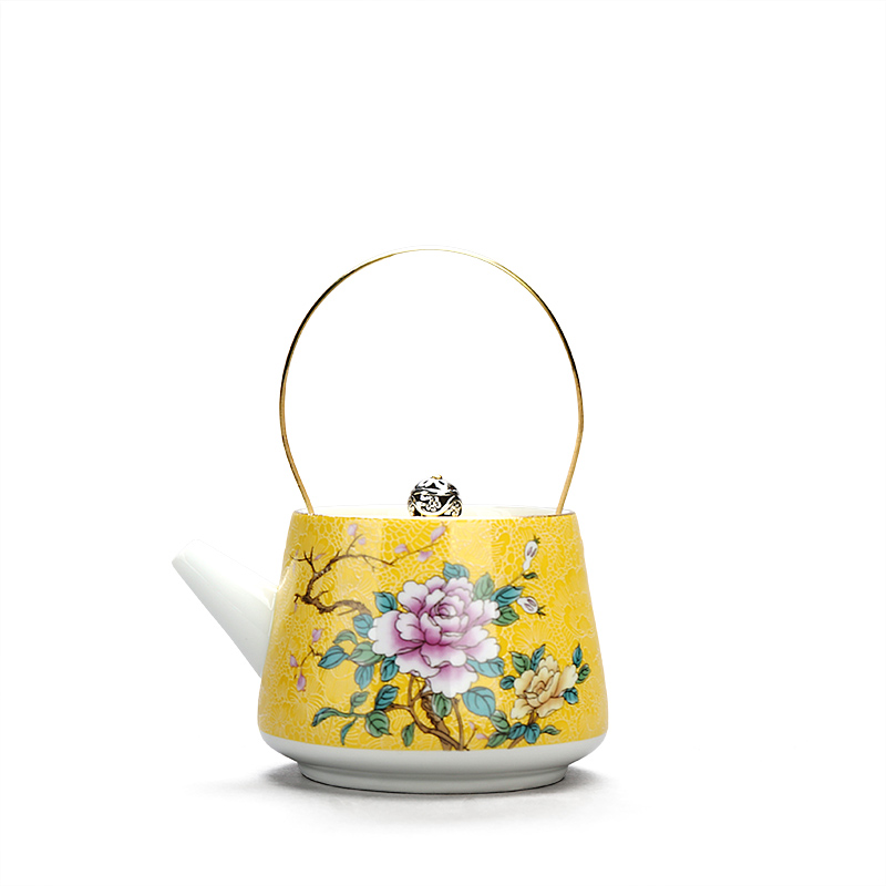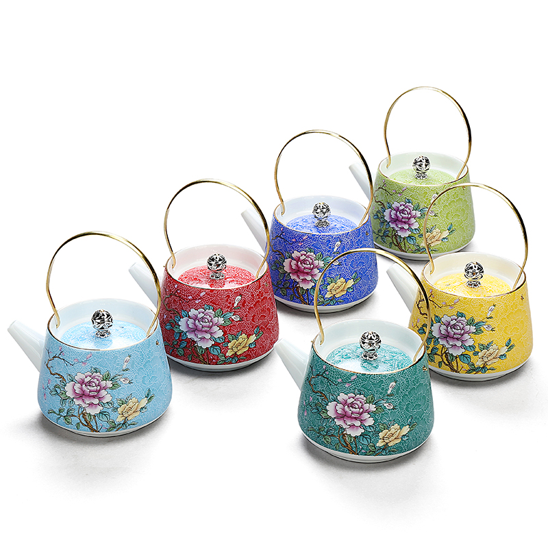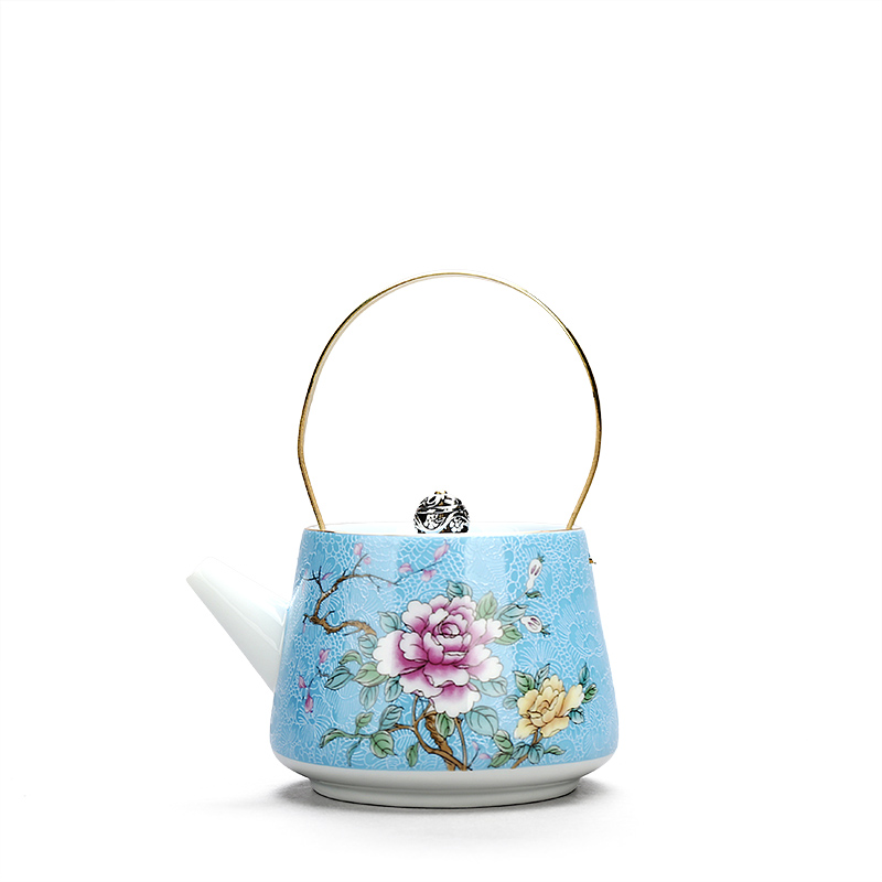 Jingdezhen pickpocketing Ti-liang pot powder Painted Gold Creativity Single Pot Kung Fu Bubble Teapot Ceramic Tea Cup Green Flower Porcelain Teapot