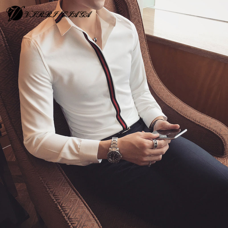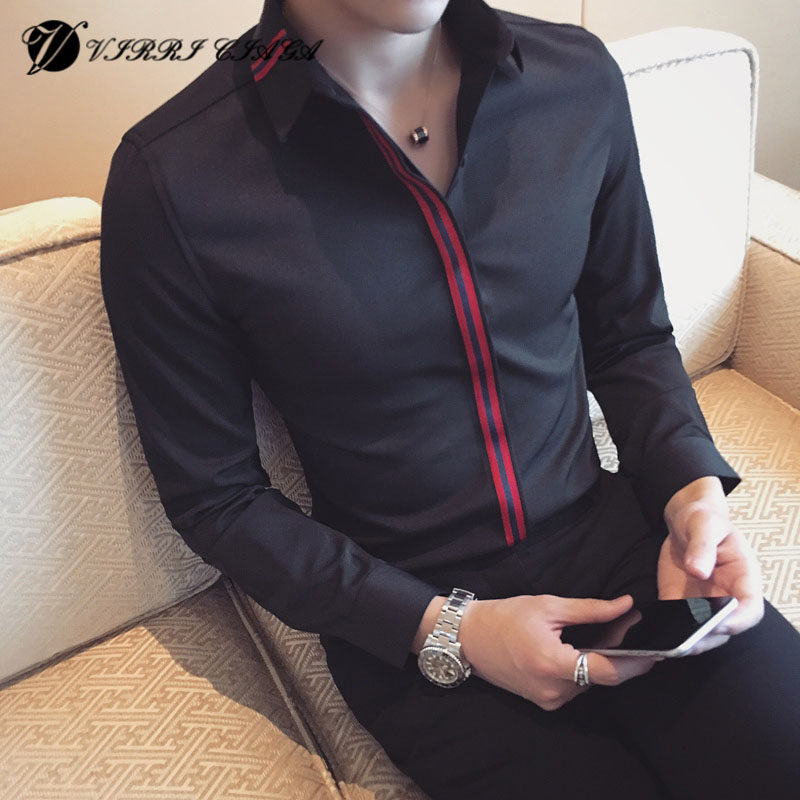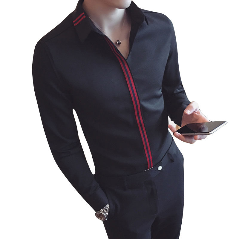 British striped shirt men and Korean men's trendy handsome men's shirt sleeves mens clothes youth